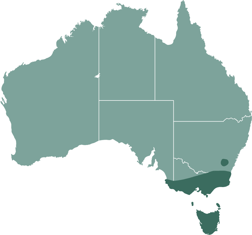 • Dark green indicates where the Blotched Blue Tongue can be found